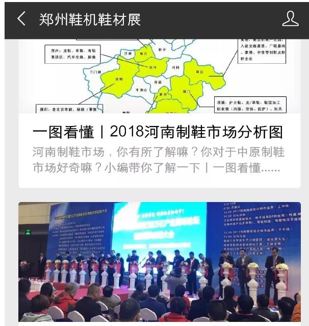 方式二:關注官方微信公眾號【鄭州鞋機鞋材展】,點擊微信公眾號底部菜單進行預登記。