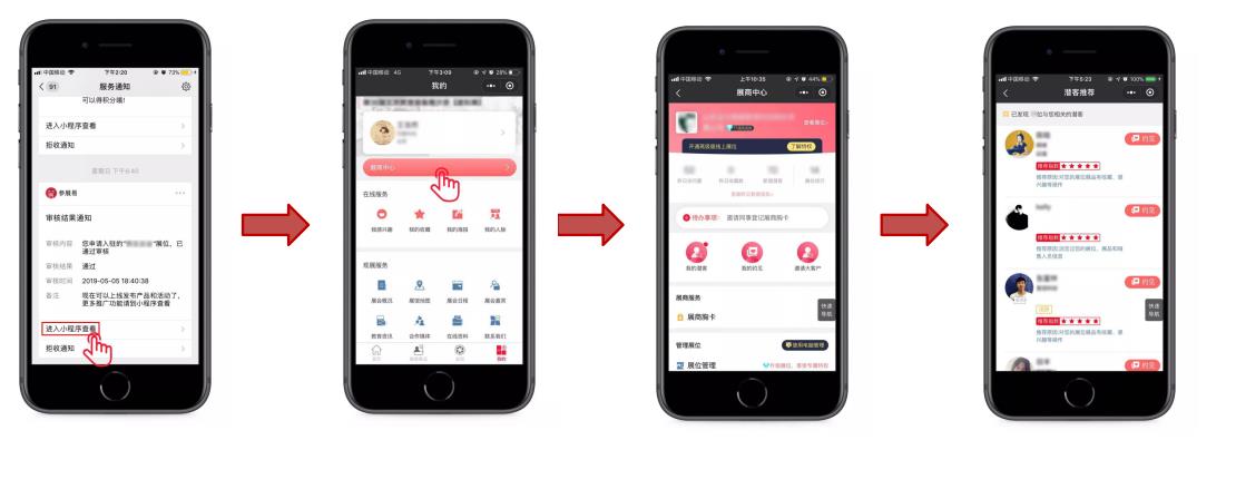 ·收到系統審核通知后,點擊“進入小程序查看”進入展商中心;