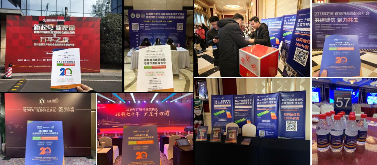在各協會的年會上,我們將第二十屆成都建博會的展會訊息滲透到每個參會嘉賓,在嘉賓簽到處擺放展會資料、易拉寶、邀請函資料入袋人手一份,年會伴手禮、年會現場插播2020成都建博會宣傳片、現場抽取現金紅包互動小游戲、現場做展會PPT推介……協會現場聯動宣傳,協會組織會員單位抱團參與展會,增強會員單位參展/參觀積極性。
