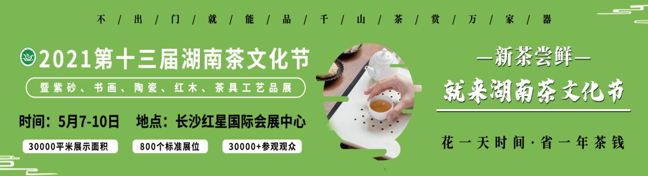 名茶薈萃,茗茶盛宴。5月7-10日,2021第十三屆湖南茶文化節暨紫砂、書畫、陶瓷、茶具工藝品展(以下簡稱“湖南茶博會”)將在長沙紅星國際會展中心隆重舉行!