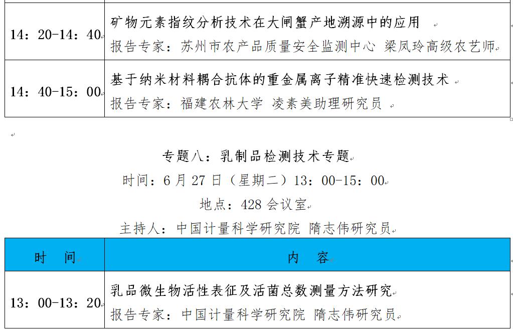 “第十二屆中國食品與農產品安全檢測技術與質量控制國際論壇”大會日程表