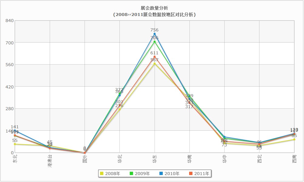 中國展會按區域的統計