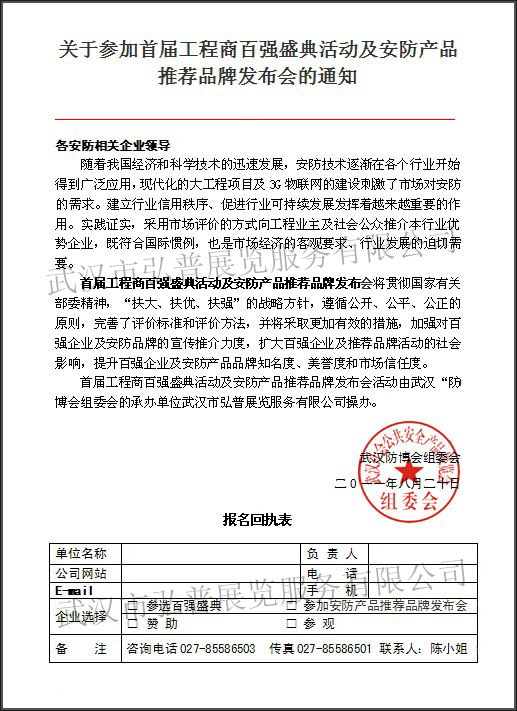 關于參加首屆工程商百強盛典活動及安防產品推薦品牌發布會的通知