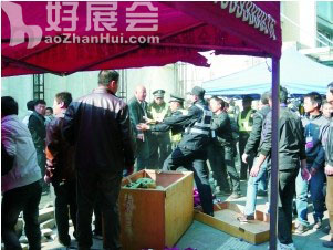 10分鐘后,兩公司工作人員發生口角,繼而爭吵,并發生肢體沖突,有人舉起雨篷砸向對方。警方馬上上前解圍,雙方陷入僵持狀態。沖突過程中,金明創展公司一名工作人員被對方用辣椒水噴霧刺傷了眼睛,造成面部浮腫,還有工作人員的衣服在拉扯中撕破。