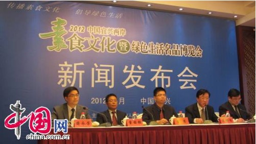 由宜興市人民政府、宜興市旅游局舉辦的2012中國(guó)宜興兩岸素食文化暨綠色生活名品博覽會(huì)新文發(fā)布會(huì)4月14日下午在宜興荊溪賓館會(huì)議廳舉行。