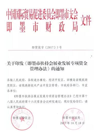 以下紅頭文件轉(zhuǎn)自即墨貿(mào)促會官微,如有不清之處請咨詢當(dāng)?shù)匕l(fā)文辦公室。