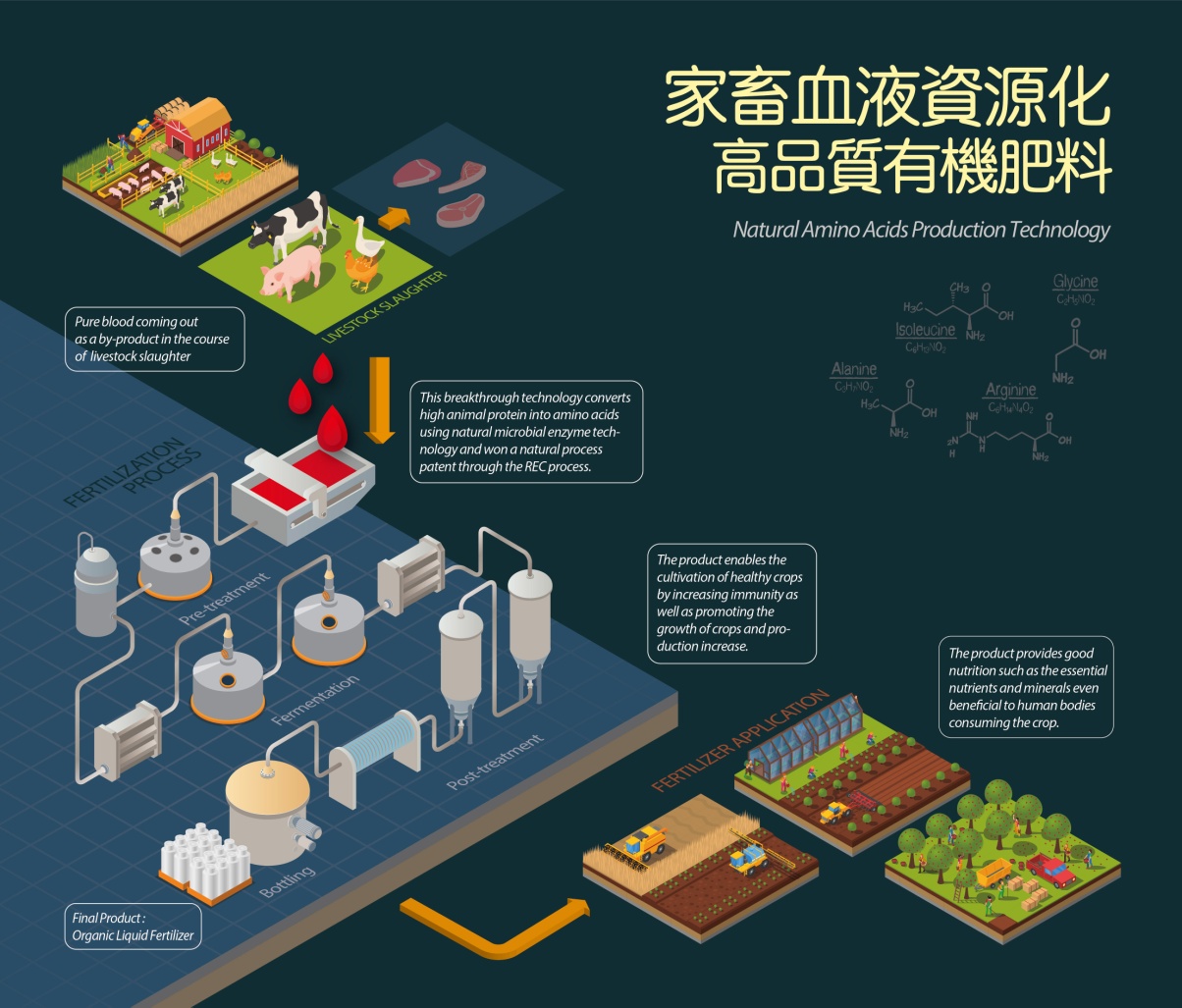 ECO FARNM含有高品質成分的天然氨基酸,種利用天然氨基酸和各種礦物質的高吸收能力提高作物生產性的產品。TANG GREEN含有多種礦物質元素的液體有機肥料,有助于農作物更好的成長,促進有機農作業市場的更好發展。家畜血液轉化的高品質有機肥料是IT智能農業現代化和無人機農業技術中最適合的產品,并得到越來越多的關注。