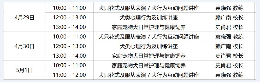為狗狗到處亂拉煩惱?為二哈的超強(qiáng)破壞力郁悶?為寶貝的營(yíng)養(yǎng)均衡操碎了心??為了解決你們養(yǎng)寵過(guò)程中遇到的大大小小問(wèn)題,我們特邀寵物行業(yè)頂級(jí)導(dǎo)師現(xiàn)場(chǎng)授課,為愛(ài)寵的你們講解豐富的養(yǎng)犬知識(shí),好好學(xué)習(xí)!,你也可以成為犬行為專(zhuān)家哦。