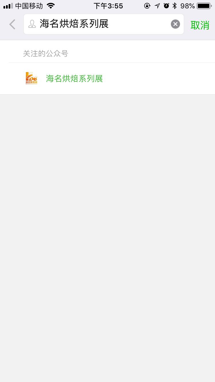 1、微信搜索公眾號【海名烘焙系列展】并關注