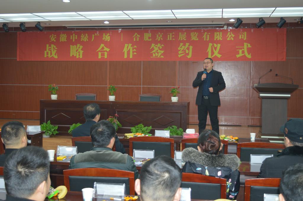 2018年12月6日10:00,在安徽中綠廣場寫字樓26樓會議廳,安徽中綠廣場與合肥京正展覽有限公司戰略合作簽約儀式隆重開場。