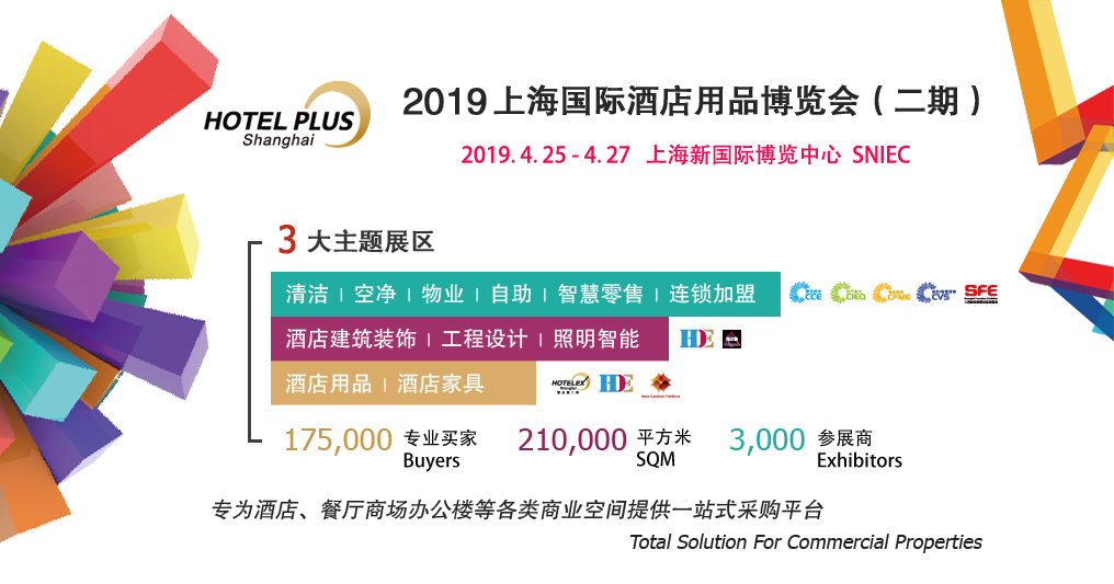 2019新國(guó)際博覽中心再度全館齊放,打通行業(yè)壁壘,共享210,000平方米展出面積,175,000觀眾資源,近3,000優(yōu)質(zhì)海內(nèi)外廠商。同期展會(huì)貫穿酒店工程、清潔產(chǎn)品、物業(yè)保潔、建筑裝飾、商業(yè)智能化設(shè)備等行業(yè),定位于中高端產(chǎn)品,為全球買家提供全系列解決方案和信息交流與分享的機(jī)會(huì),為酒店、餐廳、商場(chǎng)辦公樓等各類商業(yè)空間提供服務(wù)及整體解決方案的一站式采購(gòu)平臺(tái)。