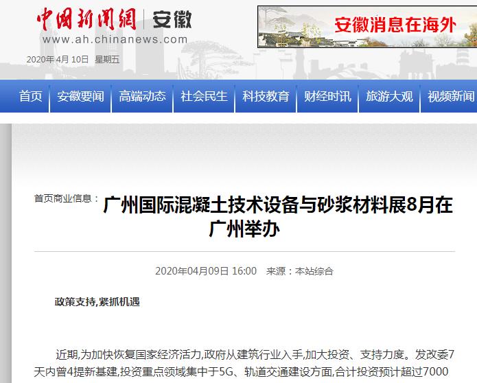 近百家知名媒體紛紛報道2020廣州國際混凝土與砂漿展