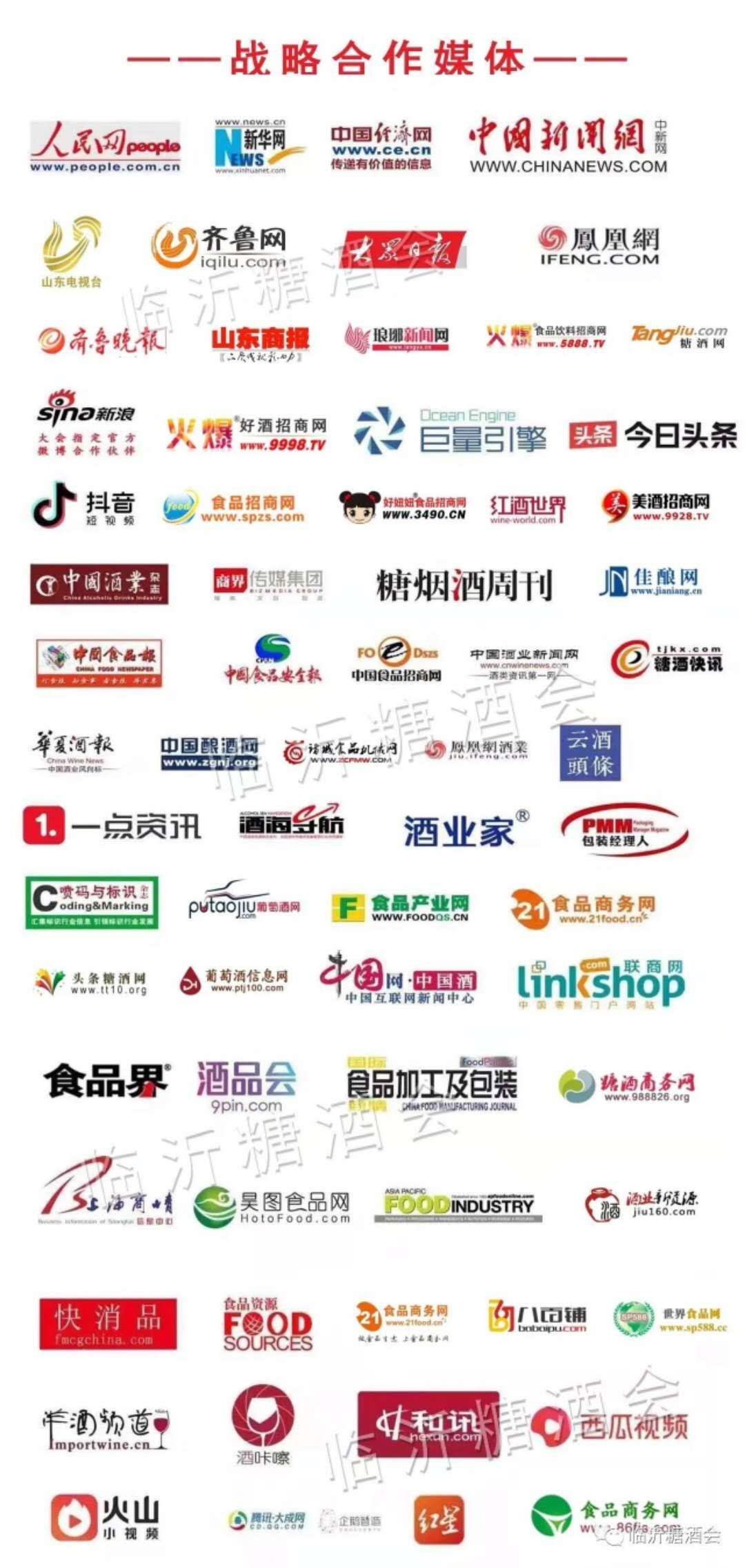 展會舉辦效果如何,宣傳至關重要。大眾媒體(山東廣播電視臺、臨沂廣播電視臺、齊魯晚報、臨沂日報)支持專業會展公司辦展,其優勢毋庸置疑。本屆山東臨沂糖酒會將會注重行業媒體及互聯網新媒體的宣傳,即利用自身展會官網作宣傳的同時也借助百度推廣、微信朋友圈廣告、今日頭條、微博等新媒體進行推介及專業觀眾報名;合作行業媒體如:華夏酒報、中國糖酒網、火爆食品飲料招商網、火爆好酒招商網、中國好酒招商網、中國美酒網、好妞妞食品飲料招商網等專業網站,新浪網、搜狐、百度搜索等門戶網站的平臺,全面為臨沂糖酒會升級造勢。