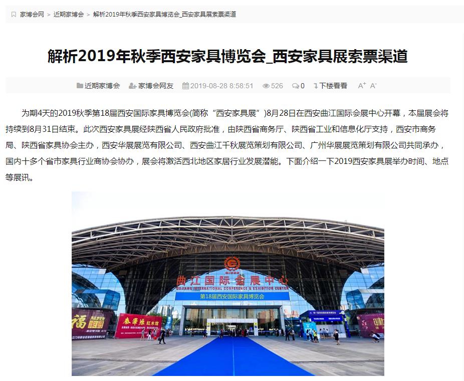 2020年9月17-20日,匯聚眾多期待的第19屆西安國際家具博覽會暨西安全屋定制家居展覽會(以下簡稱西安家具展)將在西安國際會展中心盛大啟幕,呈現一場精彩大氣的家具展,為大型會展活動再添濃墨重彩的一筆。