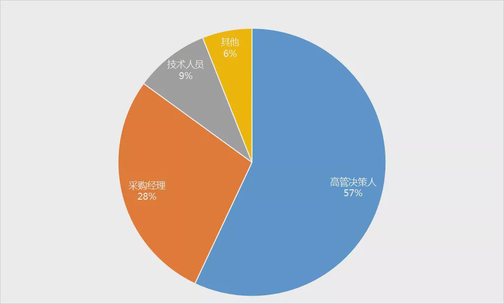 在本屆具有商業價值的專業觀眾共計49012人次,其中占比較多的高管決策人,達到57%;其次,采購經理占比28%、技術人員占比9%,其它占比6%。