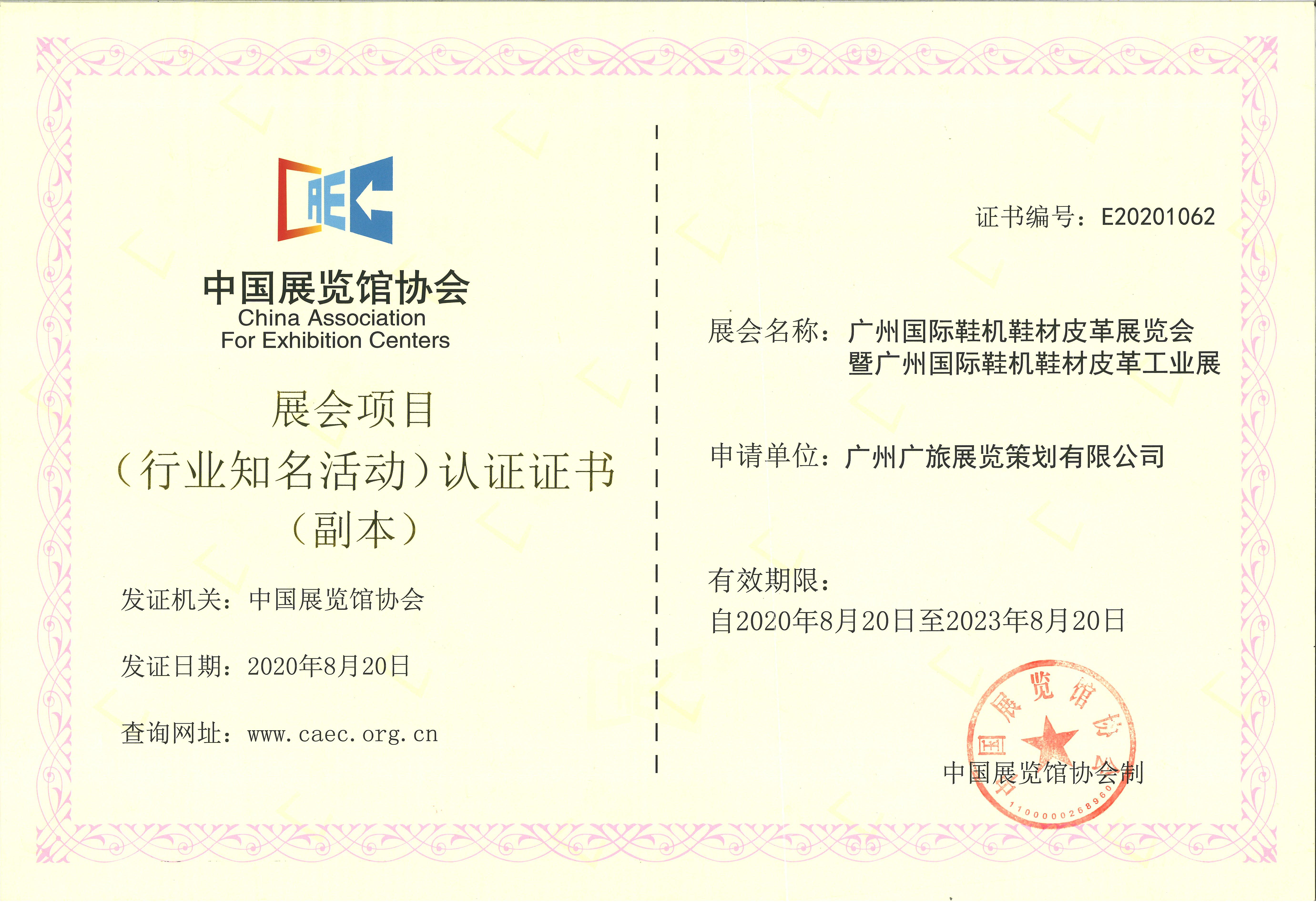 獲中國展覽館協(xié)會認(rèn)證2021廣州國際鞋機鞋材皮革工業(yè)展再添新榮譽