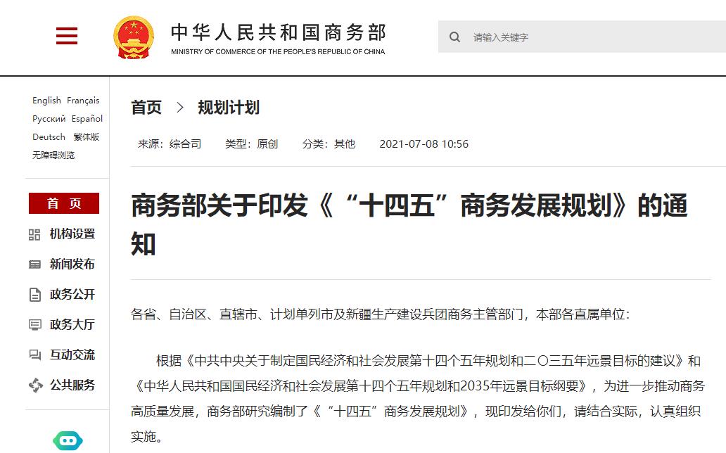 《“十四五”商務發展規劃》明確提出加快數字技術與貿易發展深度融合,提升貿易數字化水平,拓展貿易發展新空間,促進跨境電商健康持續創新發展”等一系列支持舉措,為跨境電商行業提供重大發展機遇。