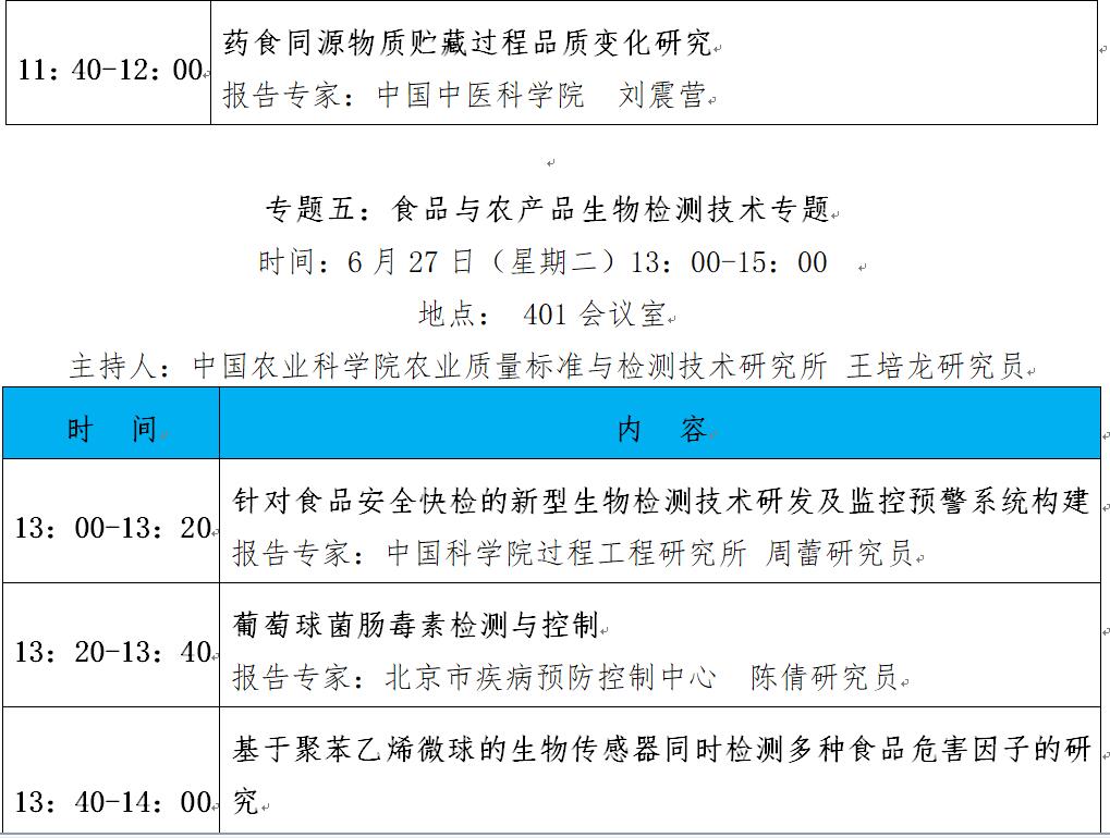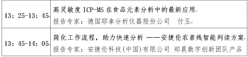“第十二屆中國食品與農產品安全檢測技術與質量控制國際論壇”大會日程表